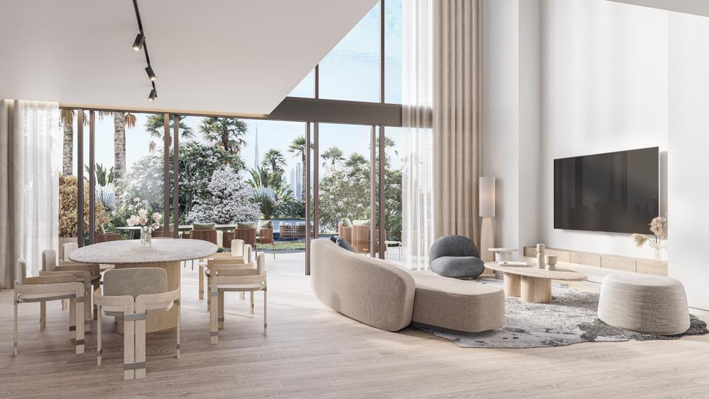 All residences are offered with double height ceilings and panoramic windows with amazing views of the Ras Al Khor Wildlife Sanctuary. The interiors will be decorated in light, soothing tones, in harmony with premium wooden and marble coverings, as well as exquisite furniture.